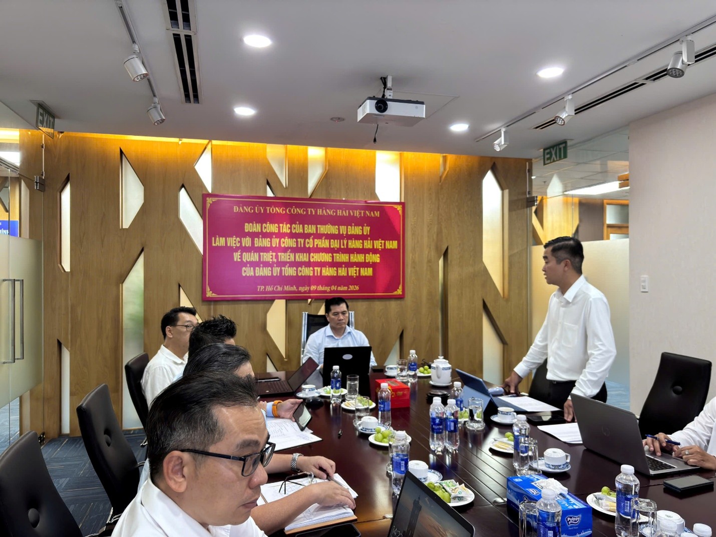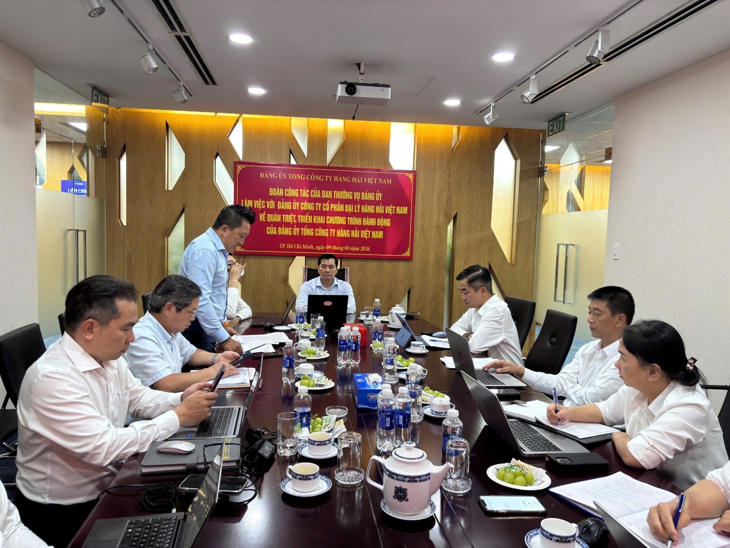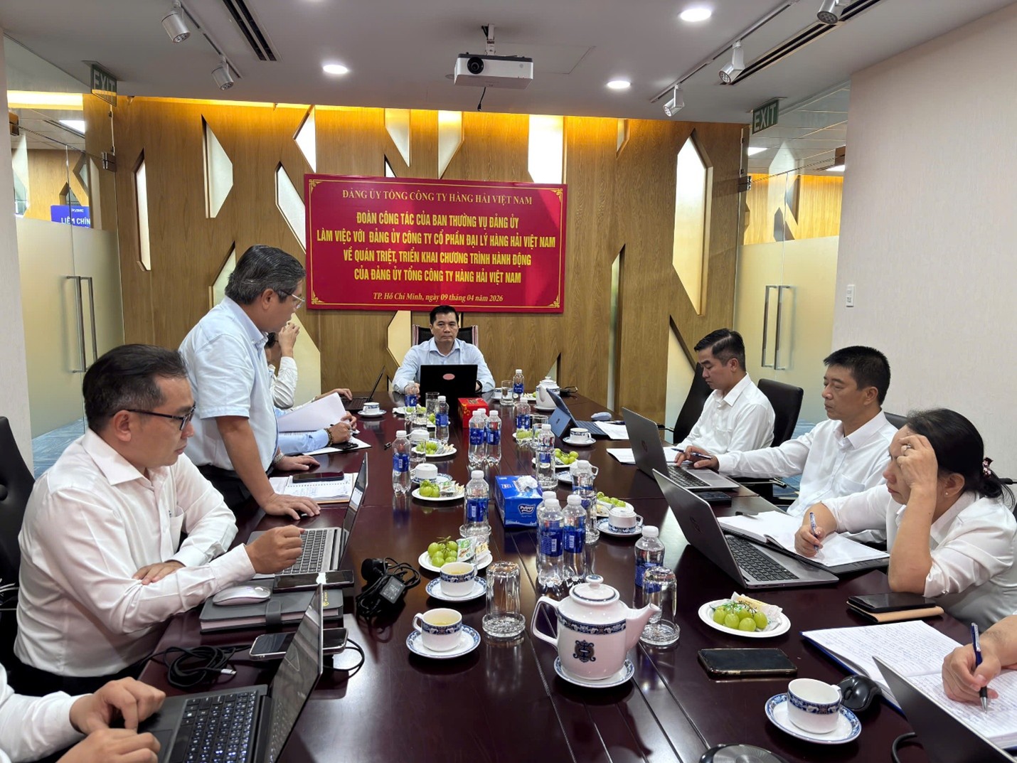 Ngày 09/4/2026, tại Văn phòng Công ty Cổ phần Đại lý Hàng hải Việt Nam, Đoàn công tác của Ban Thường vụ Đảng ủy Tổng Công ty Hàng hải Việt Nam đã có buổi làm việc với Đảng ủy Công ty nhằm quán triệt, triển khai Chương trình hành động thực hiện các nghị quyết của Đảng và định hướng phát triển trong giai đoạn mới.