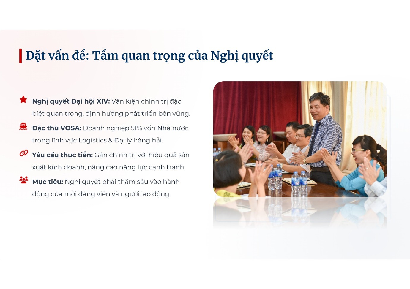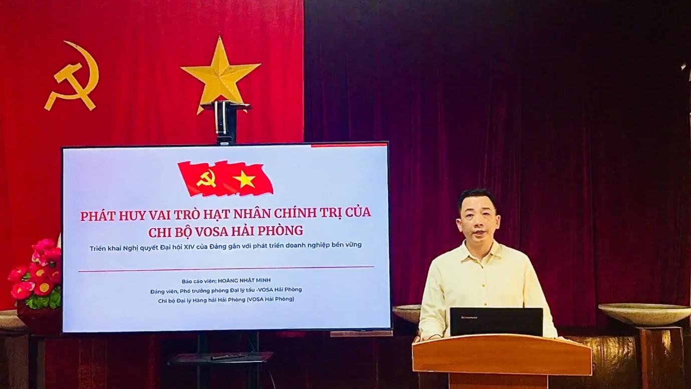 Hưởng ứng Hội thi báo cáo viên, tuyên truyền viên giỏi tuyên truyền Nghị quyết Đại hội XIV năm 2026 theo Kế hoạch số 12-KH/ĐU của Đảng ủy Tổng công ty Hàng hải Việt Nam (Đảng ủy VIMC) và Kế hoạch số 22-KH/ĐUVOSA của Đảng ủy Công ty CP Đại lý hàng hải Việt Nam (Đảng ủy VOSA); Chi bộ VOSA Hải Phòng tích cực tham gia với tinh thần: Đổi mới – Sát thực tiễn – Hướng hiệu quả.